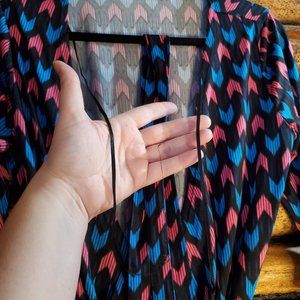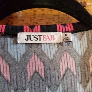 JustFab 3/4 Sleeve Wrap Crossover Dress - Black w/ Navy, Blue & Pink in Medium
