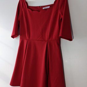 JustFab Scallop Fit and Flare Dress Geranium Red Size Large