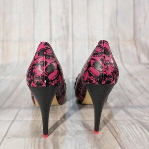JustFab Women's Pink-Black Skull Peep Toe Heels Size 41