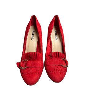 JustFab Womens Red Suede Party Wedding Chunky Block Tovah Heels Size 7