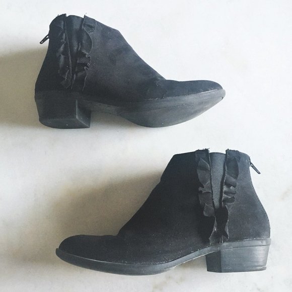 JustFab black Chelsea ankle boots / bootie with ruffles