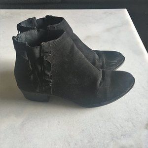 Super cute flat chelsea boots with ruffles! Back zippers for quick & easy on/off.