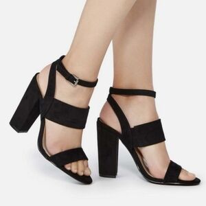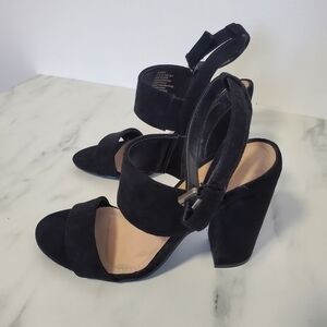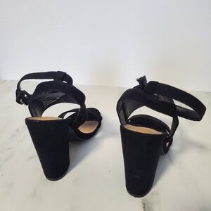 Heeled sandal ties around ankle Material: Suede Heel Height: 4.0" size 6 flaws shown in the last few pictures