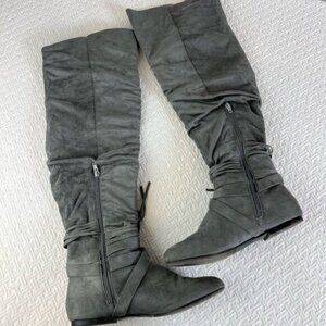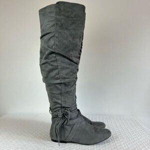 Justfab Women’s 8 Grey Faux Suede Romy Over Knee High Sock Boot Fringe Tassel