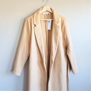 Justfab beige long wrap coat.