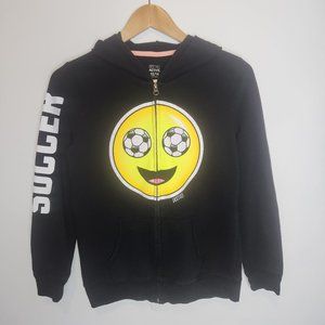 Justice Active Soccer Smiley zip up Hoodie playful athleisure SZ 12/14