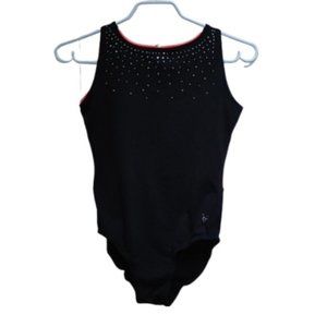 Justice Active orange black gymnastics dance leotard with gems size 16