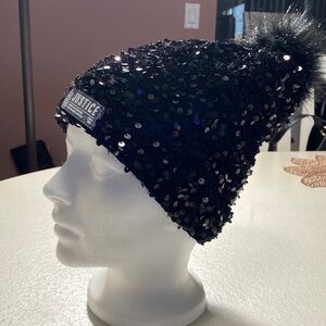 Justice " Don't let anyone put a label on you" Sequin Beanie black fur Pompom