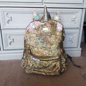 1 Justice Girls Gold Flip Sequin Unicorn Full Size Backpack