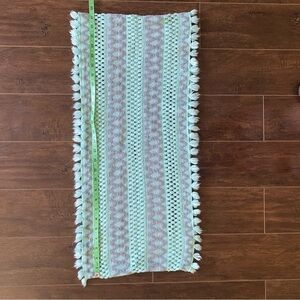 Justice green and gray knit scarf with tassels at the ends. Measures 27.5 x 12 inches. In excellent condition.