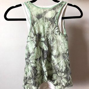 Justice Pastel Green Lace Flower Detail Tank With Plain White Tank Attached