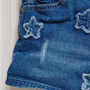 Justice dark blue wash distressed jeans shorts girl size 16 stars pattern