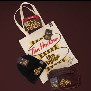 Touque, Tote, Fanny Pack. All brand new still in packaging. Small timbits box inc.