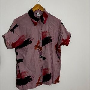 Justine Shirt in Sobel print - Melow by Melissa Bolduc - size Medium - true to size - straight cut - button up shirt. Has a bit of an 80's or early 90's vibe.