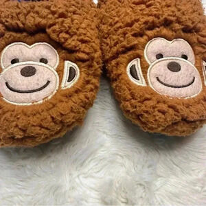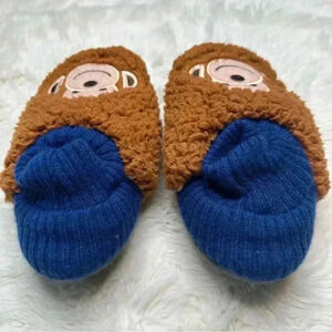 K. Bell Brown Monkey Sherpa Slippers Brown & Blue Size Small