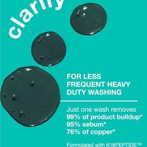 A color-safe, non-stripping clarifying shampoo with the K18PEPTIDE™ to gently but effectively remove 99% product buildup, 95% sebum + 76% copper for detoxified, refreshed hair.
