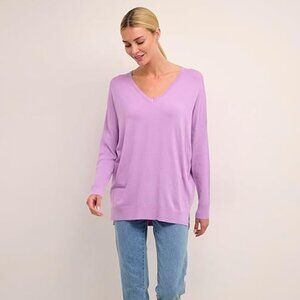 KAFFE KAmachelle Women's Knit sweater Long Sleeve V-Neck Pullover size M pink