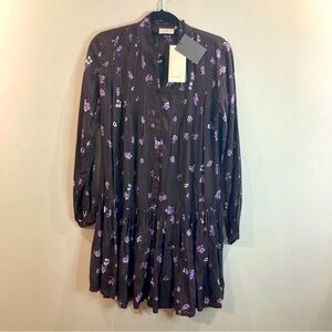 KAFFE Sz 34 Kajava Ruffle Neckline Hem Buttons Ditzy Floral Tunic Dress NEW