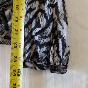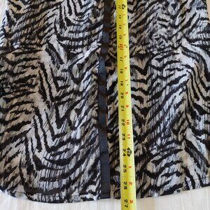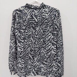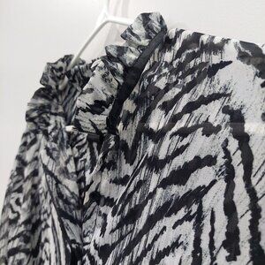 KARDASHIAN KOLLECTION Zebra Print Ruffle Neck Hidden Button Long Sleeve Blouse, Size L