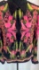 Beautiful colors. Black base with neon pink and green. Tropical orchid print. All over print. Zips up in the front. Collared. Long sleeves. Lightweight. Flowy. Collaboration with Kate Bickmore.