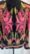 Beautiful colors. Black base with neon pink and green. Tropical orchid print. All over print. Zips up in the front. Collared. Long sleeves. Lightweight. Flowy. Collaboration with Kate Bickmore.