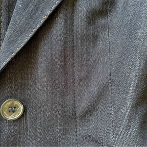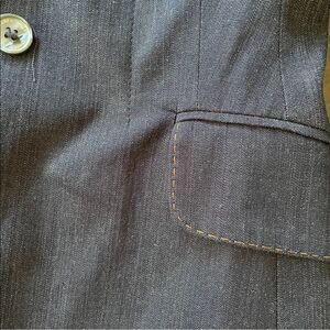 KAREN MILLEN ENGLAND Tailored Denim Cotton Blazer With Attached Faux Vest And Contrast Stitching