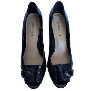 KAREN SCOTT Black Patent Peep Toe Heels 9.5
