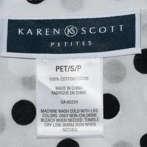 KAREN SCOTT Black and White Polka Dots Blouse Top Shirt. Size SP
