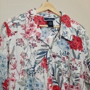 KAREN SCOTT Floral Swiss Dot Button Down Shirt Sz 2X