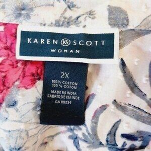 KAREN SCOTT Floral Swiss Dot Button Down Shirt Sz 2X