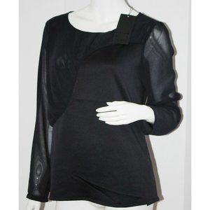 KAREN by SIMONSEN Dark Navy MESH Blouse TOP Ponda SEERSUCKER 38 $200