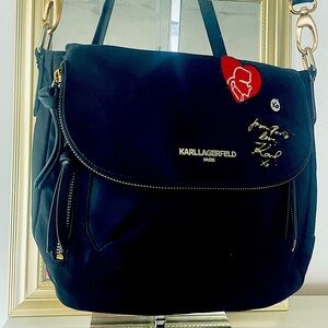 KARL LAGERFELD BLACK CROSSBODY SHOULDER BAG INVISIBLE MAGNETIC CLOSURE WOMEN BAG