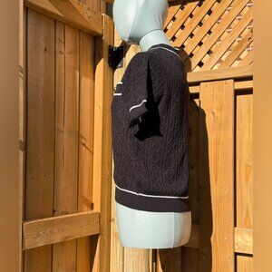 🆕 KARL LAGERFELD 🧿 NWT Black Classic Jacquard Knit Short Sleeve Sweater SzL