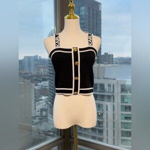🆕 KARL LAGERFELD 🧿 NWT Classic Black Knit Cami with Logo Embroidery, Buttons