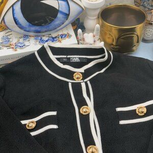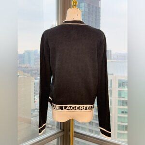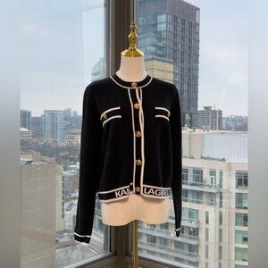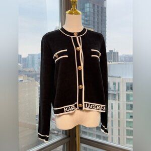 🆕 KARL LAGERFELD 🧿 NWT Classic Cardigan with Logo Embroidery & Buttons, Sz L