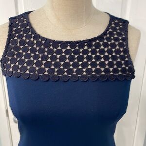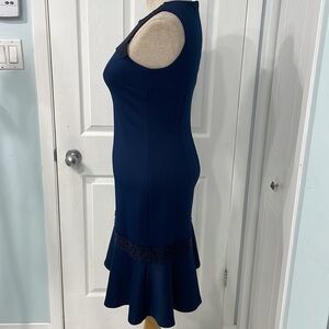 Karl Lagerfeld Paris fit and flare dress in navy ponte knit