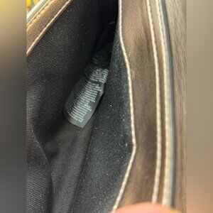 n.b. there is a small knick to the metallic leather finish, near the seam under the front flap - see last two photos