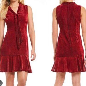 KARL LAGERFELD - Pindot Velvet tie-neck mini dress size 6 red and black