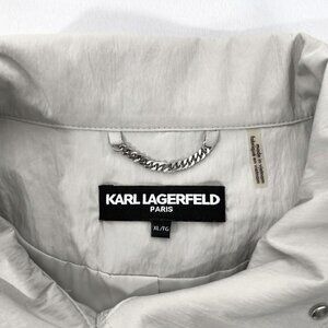 KARL LAGERFELD WOMEN'S GREY SILVER HOODED WIND COAT - XL