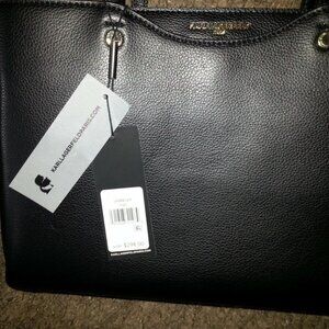 KARL LAGERFELD-PARIS Black Pebbled Leather Handbag Tote-NEW WITH TAGS