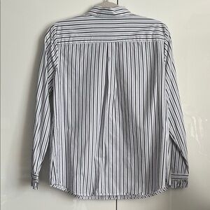 KARL LAGERFIELD Black and White Blue Striped Ruffle Button Down Shirt, Size M