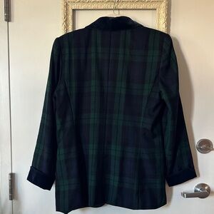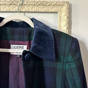 KASPER FOR A.S.L. | Vintage Purple Green & Blue Plaid Blazer with Velour Detail