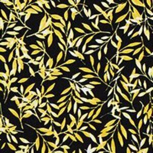 KASPER Plus Size Black and Yellow Leaf-Print Pull-On Midi Skirt NWT