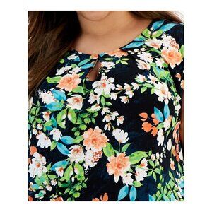 Bring spring to every day with Kasper's plus size top, a bold and bright floral print piece accented with a subtly chic keyhole cutout at the front neckline.