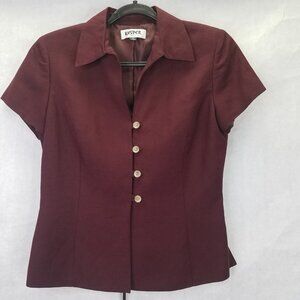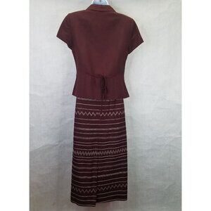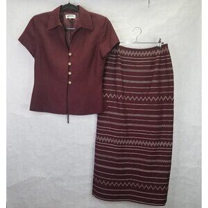 KASPER Skirt Suit Women Sz 4 Short Sleeve Jacket Burgundy Maxi Skirt Linen Lined