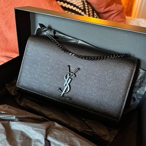 CLASSIC SAINT LAURENT MONOGRAM SHOULDER BAG MADE WITH METAL-FREE TANNED LEATHER AND ORGANIC COTTON LINING, DECORATED WITH METAL YSL INITIALS AND CHAIN TASSEL, FEATURING A CHAIN SHOULDER STRAP.