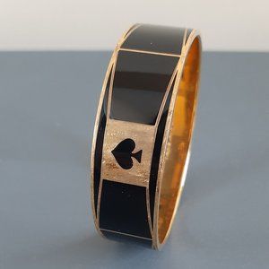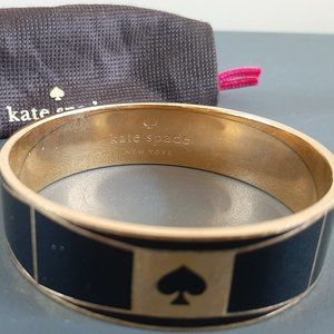 Stay classy with the beautiful Kate Spade Black and Gold Bangle. Black Bow motif with classic spade on two of the bows. Measures approximately 2.75" in diameter.