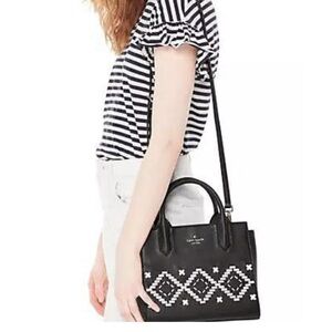 KATE SPADE— Flynn Street Small Meriwether Leather Satchel, Black/White