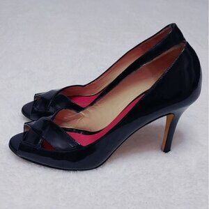 KATE SPADE Gwennie black patent leather open toe heels