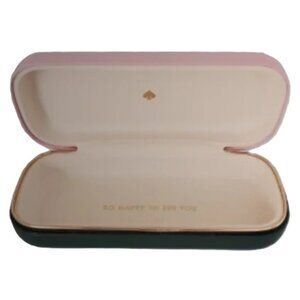 KATE SPADE Hardshell Eyewear Case Pink & Forest Green Goldtone Trim Storage Case